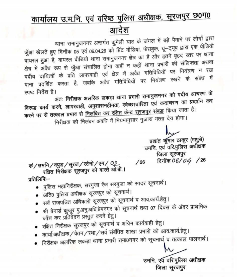 जुए के वायरल वीडियो पर कार्रवाई, थाना प्रभारी समेत आरक्षक निलंबित