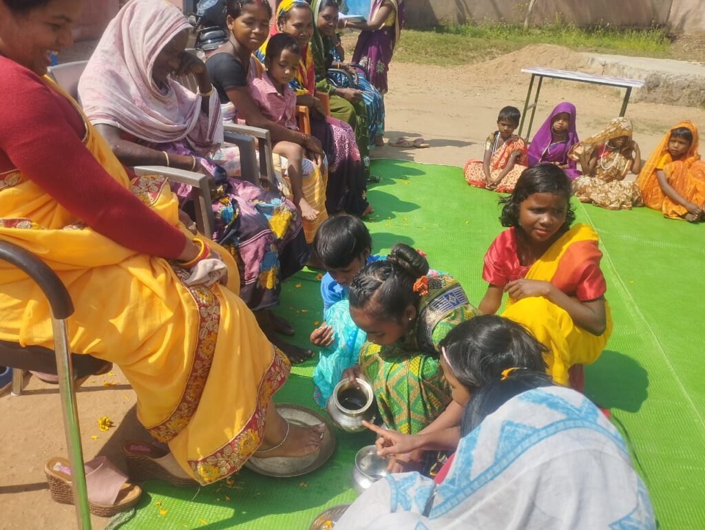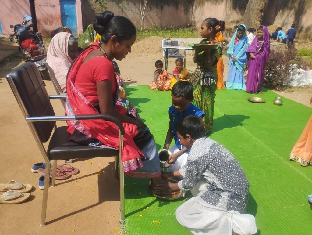 14 फरवरी : छात्रों ने माता पिता के धोए चरण, मातृपितृ दिवस में किया पालकों का सम्मान