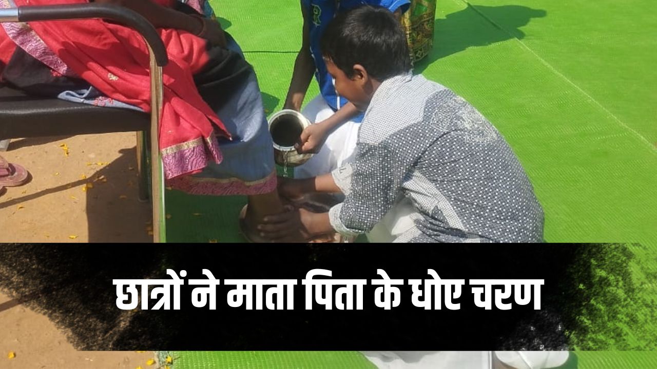 14 फरवरी : छात्रों ने माता पिता के धोए चरण, मातृपितृ दिवस में किया पालकों का सम्मान