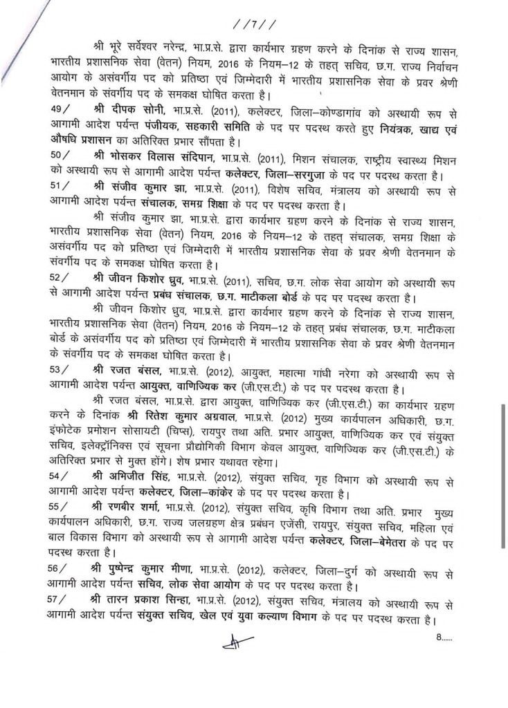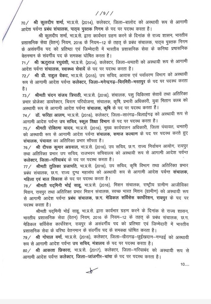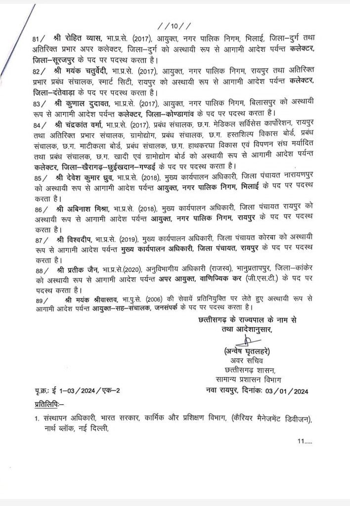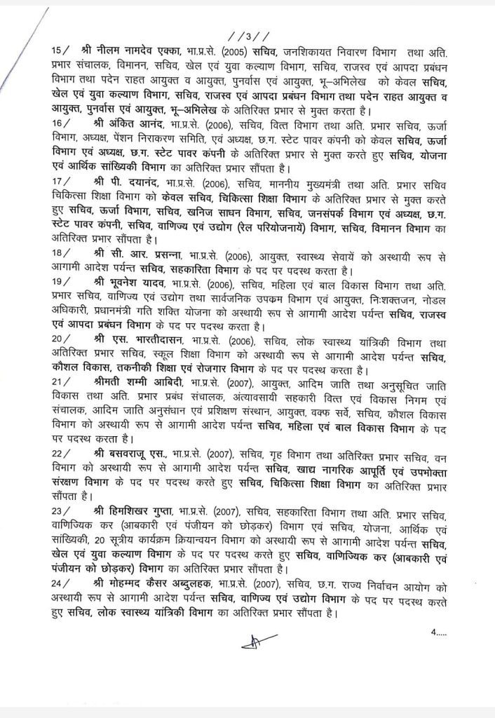 रायपुर.CG IAS Transfer : छत्तीसगढ़ में बीजेपी की सरकार बनने के एक महीने बाद ही राज्य में बड़ी प्रशासनिक सर्जरी की जा रही है. हर दिन किसी न किसी जिले के पुलिस कर्मचरियों के तबादले के साथ ही अब बुधवार देर रात सरकार ने 88 आईएएस अफ़सरों के साथ एक आईपीएस अफ़सर के तबादले किए हैं. जिसके अनुसार 19 जिलों में नए कलेक्टर बिठाये जाएंगे. इसी दौर में जनसंपर्क विभाग की जिम्मेदारी भी आईपीएस अधिकारी मयंक श्रीवास्तव को सौंपी गई है. इस मामले में अब सरकार ने दावा करते हुए कहा है कि यह कार्रवाई नहीं है. केवल विभाग बदला गया है.