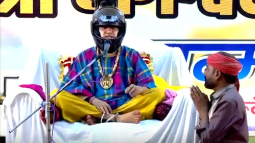 हम्माल (पल्लेदार) ने बताया कि “मेरा नाम बालवीर है और में मुगारी गांव में रहता हूं। मैंने आपको हेलमेट इसलिए भेंट किया क्योंकि जब आप कथा करने जाते हो तो गाड़ी से उतरते वक्त लोग आपको फूल फेंककर मारा करते हैं जो आपको लग जाते हैं। इसलिए हमें लगा कि आपको जन्मदिन पर हेलमेट दिया जाए। ताकि आप अब जब भी कथा करने जाएं तो गाड़ी से उतरने के बाद हेलमेट लगा लें। जिससे उनके फूल आपको लगे नहीं।”