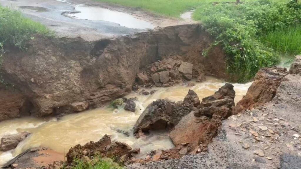 बलरामपुर: छत्तीसगढ़ के बलरामपुर जिले में पिछले 12 घंटों से हो रही लगातार बारिश के कारण नदियां और नाले उफान पर हैं। इस भारी बारिश ने जिले के वाड्रफनगर विकासखंड में काफी तबाही मचाई है। वाड्रफनगर विकासखंड के पनसारा चलगली मार्ग पर बना पुल और सड़क पूरी तरह से बह गया है। जिसके कारण कई गांवों का संपर्क टूट गया है और आवाजाही पूरी तरह से ठप हो गई है।