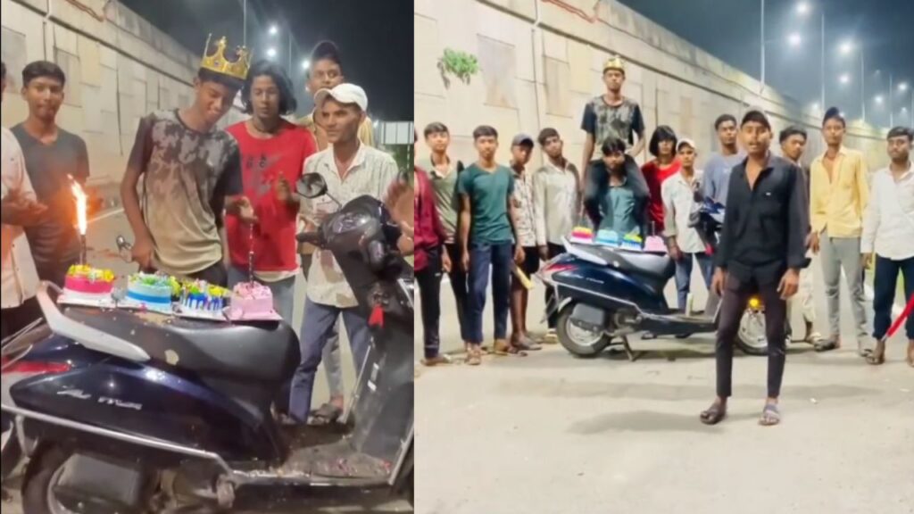 बीच सड़क पर तलवार से केक काटा, पटाखे फोड़े – बर्थडे सेलिब्रेशन का वीडियो वायरल