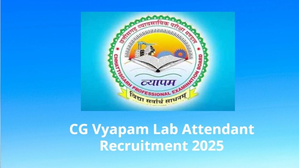 रायपुर। छत्तीसगढ़ व्यावसायिक परीक्षा मंडल (CG Vyapam) ने उच्च शिक्षा संचालनालय, नवा रायपुर के अंतर्गत प्रयोगशाला परिचारक (चतुर्थ श्रेणी) के रिक्त पदों पर भर्ती के लिए लिखित परीक्षा की घोषणा की है। इच्छुक उम्मीदवार 9 जून 2025 से 30 जून 2025 तक व्यापम की आधिकारिक वेबसाइट vyapam.cgstate.gov.in पर ऑनलाइन आवेदन कर सकते हैं।