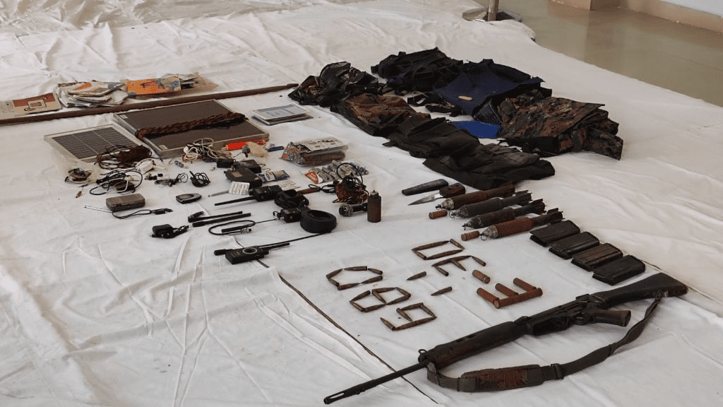 मुठभेड़ स्थल से सुरक्षाबलों को एसएलआर हथियार, 12 बोर बंदूक की गोलियां, मैगजीन, जीबीएल, आईईडी, दवाइयां और अन्य दैनिक उपयोग की सामग्रियां बरामद हुई हैं।