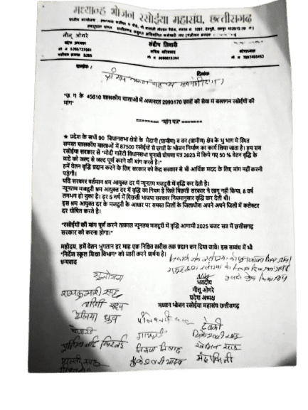 महासंघ का कहना है कि प्रदेश के सभी 90 विधानसभा क्षेत्रों की शासकीय शालाओं में करीब 87,500 रसोइया मध्यान्ह भोजन का कार्य कर रहे हैं। इन रसोइयों ने मोदी सरकार की उस घोषणा का हवाला दिया जिसमें चुनावी वादा किया गया था कि उनका वेतन 50% तक बढ़ाया जाएगा।