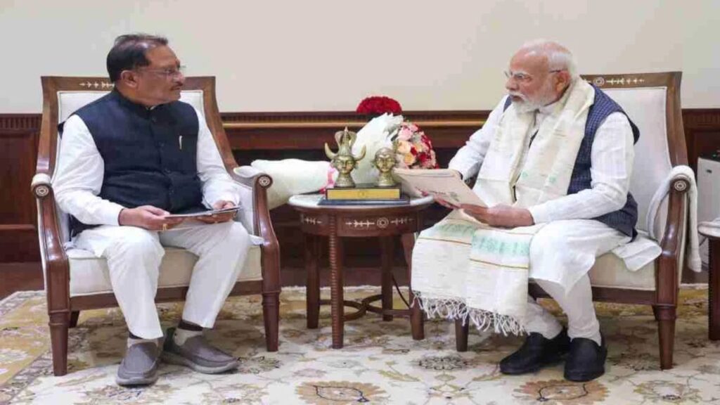 प्रधानमंत्री मोदी से मिले मुख्यमंत्री विष्णुदेव साय, अमृत रजत महोत्सव में आने का दिया न्योता