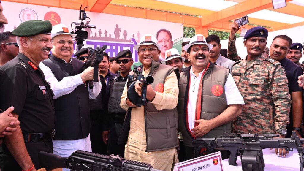 Armed military ceremonies : रायपुर के साइंस कॉलेज मैदान में आयोजित भव्य सशस्त्र सैन्य समारोह का शुभारंभ छत्तीसगढ़ के मुख्यमंत्री विष्णुदेव साय ने किया। इस अवसर पर मुख्यमंत्री के साथ विधानसभा अध्यक्ष डॉ. रमन सिंह, गृह मंत्री विजय शर्मा समेत अन्य गणमान्य व्यक्ति भी उपस्थित थे। समारोह के दौरान मुख्यमंत्री साय ने भारतीय सेना के अत्याधुनिक हथियारों को नजदीक से देखा और उनकी विशेषताओं के बारे में जानकारी ली।