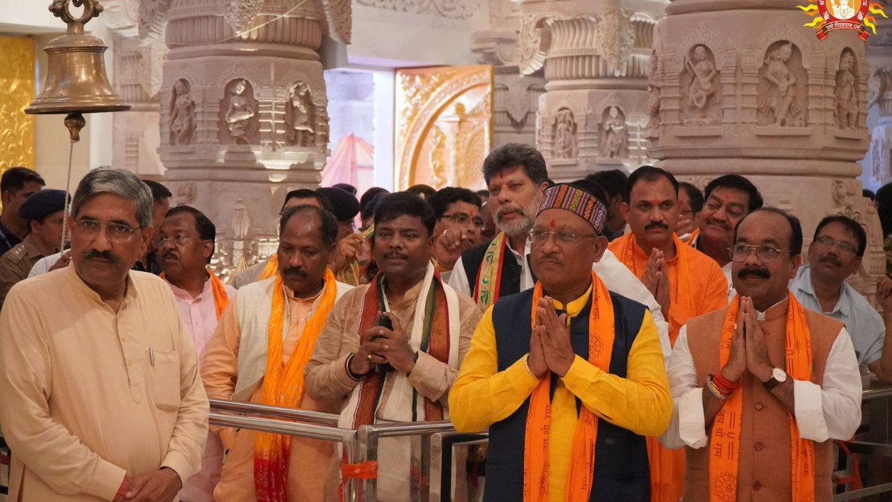 रायपुर। रामलला के दर्शन के लिए रायपुर से रवाना हुए मुख्यमंत्री विष्णु देव साय और मंत्रिमंडल में उनके सहयोगी अयोध्या पहुंच गए हैं. रामलला के दर्शन के लिए पहुंचे सीएम साय और मंत्रिमंडल में उनके सहयोगी धार्मिक परिधान में नजर आए.