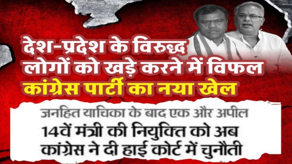 रायपुर। छत्तीसगढ़ की राजनीति में इस समय मंत्रिमंडल विस्तार को लेकर बड़ा विवाद खड़ा हो गया है। मुख्यमंत्री विष्णु देव साय के हालिया फैसले से मंत्रियों की संख्या 11 से बढ़ाकर 14 कर दी गई है। इस पर कांग्रेस ने आपत्ति जताते हुए हाईकोर्ट में याचिका दायर की है। वहीं, भाजपा ने कांग्रेस पर पलटवार करते हुए पोस्टर जारी किया और सवाल उठाया कि आखिर कांग्रेस किस समाज के मंत्री को हटाना चाहती है।