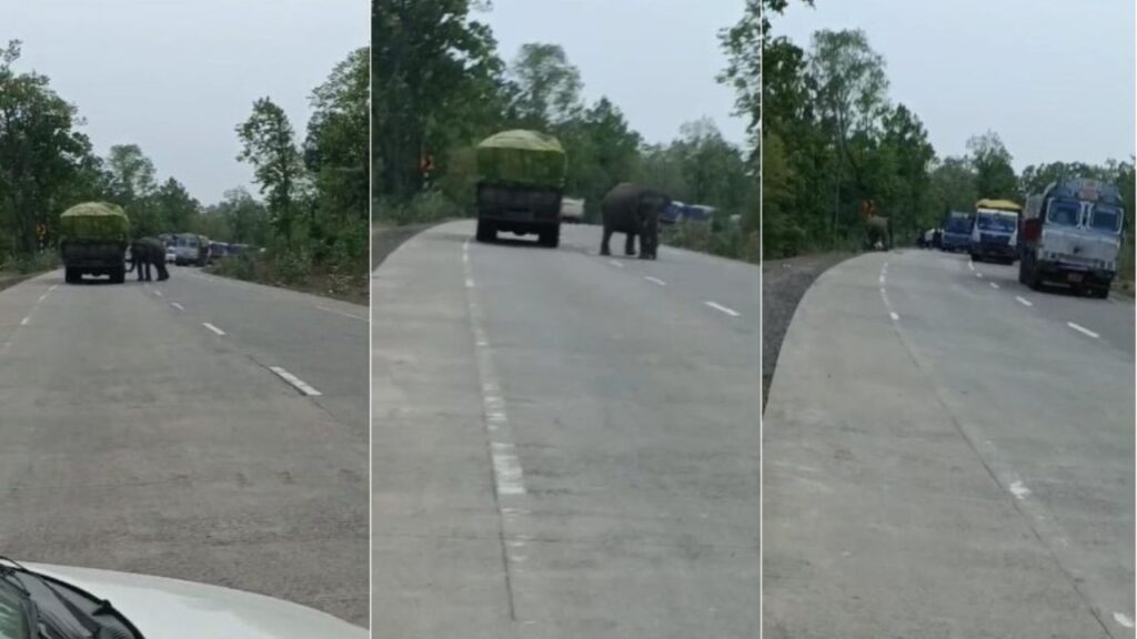 जानकारी के अनुसार, तीन हाथी जंगल से निकलकर सड़क पार कर रहे थे। इस दौरान लोगों ने शोर मचाकर हाथियों को डराने की कोशिश की। इससे एक हाथी गुस्से में आ गया और सड़क पर उत्पात मचाने लगा।