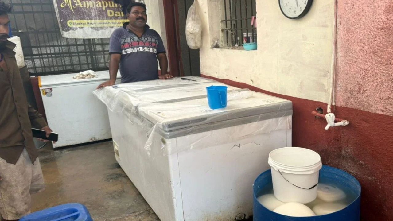 रायपुर। राजधानी रायपुर में स्वास्थ्य विभाग और खाद्य सुरक्षा विभाग की संयुक्त टीम ने मंगलवार को नकली पनीर बनाने वाली फैक्ट्री का भंडाफोड़ किया। यह फैक्ट्री शंकर नगर क्षेत्र में नाले के ऊपर अवैध रूप से चलाई जा रही थी। टीम ने मौके से बड़ी मात्रा में नकली पनीर, कच्चा माल, थर्माकोल डिब्बे और पैकिंग सामग्री जब्त की है।