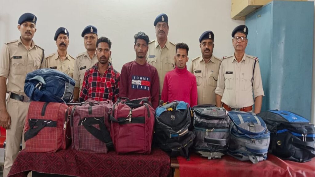 रायपुर: जीआरपी ने रायपुर रेलवे स्टेशन से 79 किलो गांजा के साथ 3 तस्करों को गिरफ्तार किया है। इन तस्करों की पहचान प्रशांत कुमार लीमा, चितरंजन पाइक और तरंग राणा के रूप में हुई है। ये सभी ओडिशा के रहने वाले हैं।
