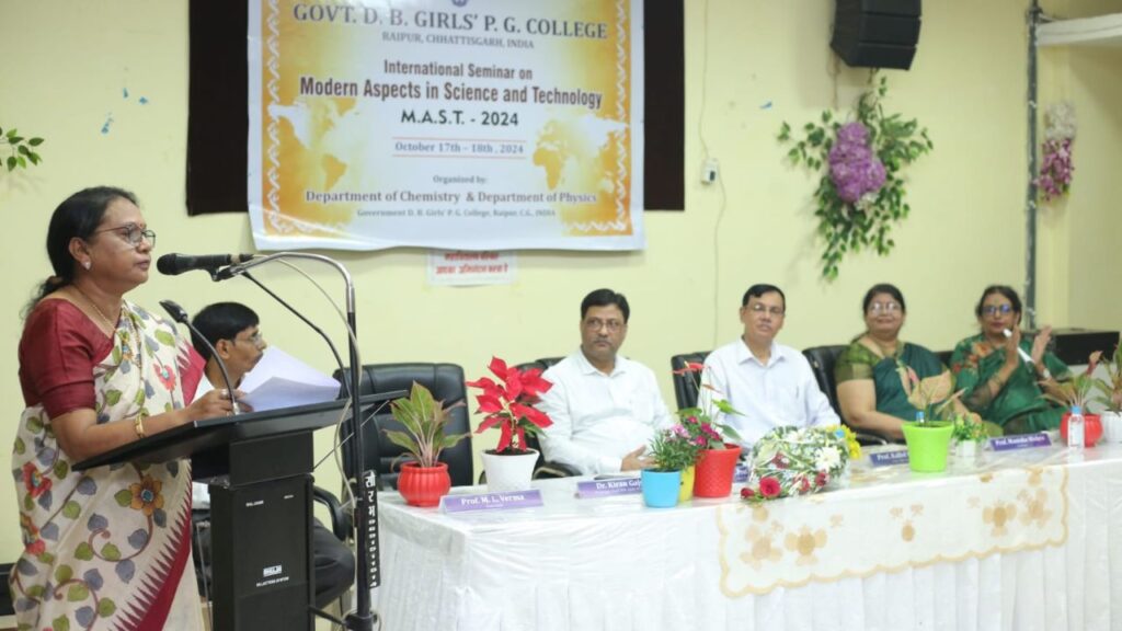 Raipur : शासकीय दूधाधारी बजरंग महिला महाविद्यालय द्वारा 17,18 अक्टूबर 2024 को दो दिवसीय अंतरराष्ट्रीय सेमिनार का आयोजन किया गया। सेमिनार का विषय है मॉडर्न एस्पेक्ट्स इन साइंस एंड टेक्नोलॉजी। इस अंतरराष्ट्रीय सेमिनार के उद्घाटन सत्र में मुख्य अतिथि पंडित रवि शंकर शुक्ल विश्वविद्यालय के कुलपति प्रोफेसर सच्चिदानंद शुक्ल ने कहा कि विज्ञान में नित नए आविष्कार होते रहे हैं ।उन्होंने कहा कि मेरा ऐसा विश्वास है कि भविष्य में विज्ञान अध्यात्म से भी जुड़ेगा । भारतीय ज्ञान परंपरा में विज्ञान के प्रयोग देखे जा सकते हैं । हमें एक राष्ट्रीय नेटवर्क सिस्टम बनाना चाहिए जिसमें सभी अध्ययन संस्थाएं आपस में जुड़ें और अपने शोध साझा करें । कुलपति ने महाविद्यालय को शोध हेतु हर संभव सहयोग देने का आश्वासन दिया ।