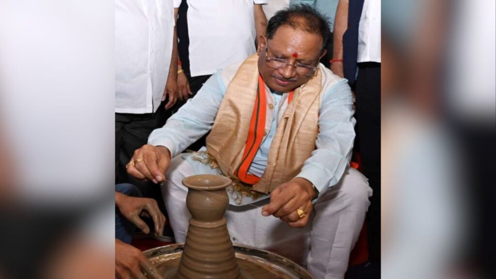 Gandhi Jayanti : गांधी जयंती के अवसर पर मुख्यमंत्री विष्णुदेव साय ने रायपुर के दीनदयाल उपाध्याय ऑडिटोरियम में खादी और ग्रामोद्योग विभाग की प्रदर्शनी का अवलोकन किया। इस अवसर पर मुख्यमंत्री ने चाक पर अपनी कला का प्रदर्शन करते हुए मिट्टी की कटोरी बनाई और स्थानीय बुनकरों द्वारा तैयार की गई गोदना पेंटिंग वाली कोसा साड़ी खरीदी। कार्यक्रम में खादी प्रदर्शनी के साथ-साथ स्वच्छता ही सेवा पखवाड़े का समापन और कई अन्य गतिविधियों का आयोजन किया गया।