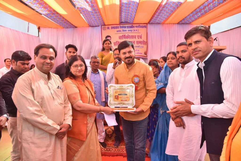 खरोरा। रामप्रसाद देवांगन शासकीय महाविद्यालय, खरोरा में वार्षिकोत्सव एवं प्रतिभा सम्मान समारोह 2025 का भव्य आयोजन किया गया। कार्यक्रम के मुख्य अतिथि क्षेत्रीय विधायक माननीय अनुज शर्मा (पद्मश्री) थे, जबकि विशिष्ट अतिथि के रूप में अनिल सोनी (पूर्व अध्यक्ष, नगर पंचायत, खरोरा) एवं वरिष्ठ व्यवसायी एवं समाजसेवी नेतराम धीवर उपस्थित रहे।