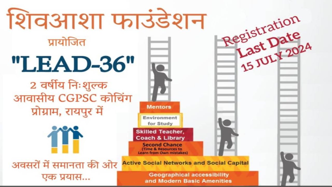 रायपुर, छत्तीसगढ़: नेतृत्व साधना केंद्र, “LEAD-36” कार्यक्रम के लिए 17 जुलाई को प्रवेश परीक्षा आयोजित कर रहा है। इस कार्यक्रम के तहत, प्रदेश के 70 ऐसे प्रतिभावान युवाओं को 2 वर्षीय CGPSC सिविल सेवा की निःशुल्क आवासीय कोचिंग प्रदान की जाएगी जो आर्थिक और सामाजिक रूप से पिछड़े हुए हैं।