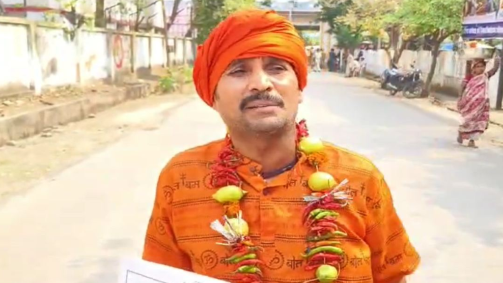Rajnandgaon : राजनांदगांव लोकसभा चुनाव में कई रंग दिखाई दे रहे हैं। राष्ट्रीय पार्टियों के उम्मीदवारों के साथ-साथ कई निर्दलीय उम्मीदवार भी अपनी किस्मत आजमा रहे हैं। आज, कवर्धा जिले के निर्दलीय उम्मीदवार अजय पाली ने अनोखे अंदाज में नामांकन दाखिल किया। उन्होंने अपने गले में नींबू-मिर्च की माला पहनी हुई थी और बोल बम के नारे लिखे लाल कुर्ता पहना हुआ था।