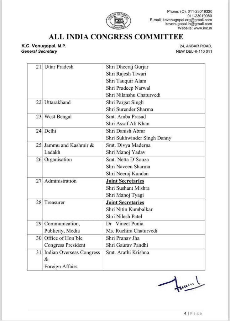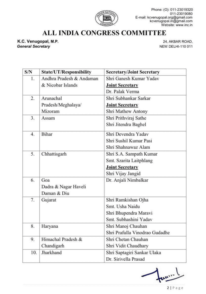 छत्तीसगढ़ कांग्रेस में बड़ा फेरबदल, संपत कुमार और जारिता लैतफलांग बने सचिव