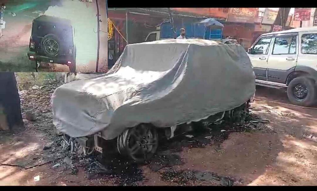 नकाबपोश ने थार वाहन को लगाई आग, सीसीटीवी में कैद हुई वारदात