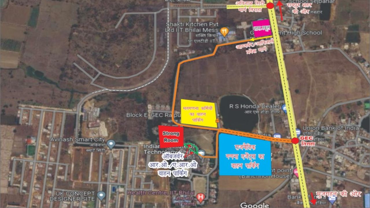 • शासकीय अधिकारी-कर्मचारी – अपना वाहन कॉलेज गेट के पास मैदान में पार्क कर पैदल मतगणना स्थल में प्रवेश करेंगे।