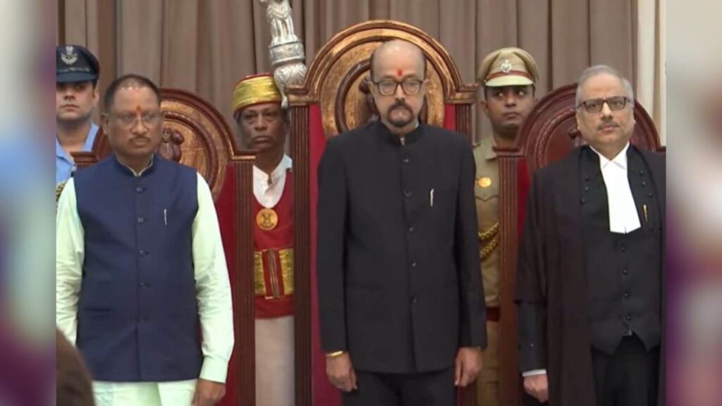 रायपुर: छत्तीसगढ़ के 10वें राज्यपाल रमेन डेका ने आज शपथ ली। छत्तीसगढ़ हाईकोर्ट के मुख्य न्यायाधीश रमेश सिन्हा ने उन्हें पद एवं गोपनीयता की शपथ दिलाई। शपथ समारोह में मुख्यमंत्री विष्णुदेव साय, विधानसभा अध्यक्ष डॉ. रमन सिंह, पूर्व मुख्यमंत्री भूपेश बघेल, सहित मंत्रिमंडल के सदस्य, विधायक और बड़ी संख्या में अधिकारी और गणमान्य नागरिक मौजूद रहे।
