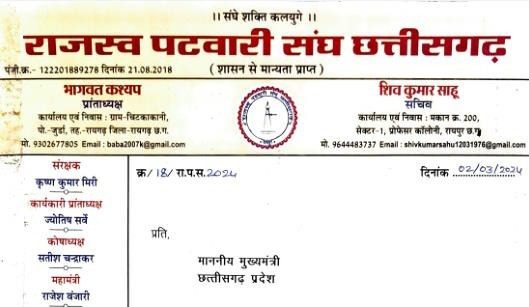 पत्र में कहा गया है कि  7 जनवरी को आयोजित राजस्व निरीक्षक परीक्षा पर आपत्ति जताते हुए संघ ने उच्चस्तरीय जांच के लिए राज्य शासन से पत्राचार किया था. लेकिन राज्य सरकार ने आपत्तियों पर किसी प्रकार की कार्रवाई करने की बजाए परीक्षा का परिणाम 29 फरवरी को घोषित किया दिया.