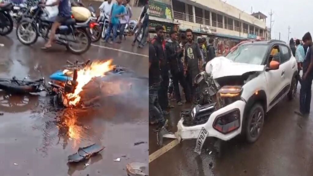 Balod : बालोद शहर के शिवनाथ कॉम्प्लेक्स के पास एक कार और बाइक में जोरदार भिड़ंत हो गई, जिसमें बाइक चालक गंभीर रूप से घायल हो गया है। हादसे के बाद बाइक में आग लग गई और मौके पर मौजूद लोगों ने आग पर काबू पाने की कोशिश की, लेकिन बाइक पूरी तरह से जलकर राख हो गई। कार के सामने का हिस्सा भी बुरी तरह क्षतिग्रस्त हो गया। यह घटना कोतवाली थाना क्षेत्र की है।