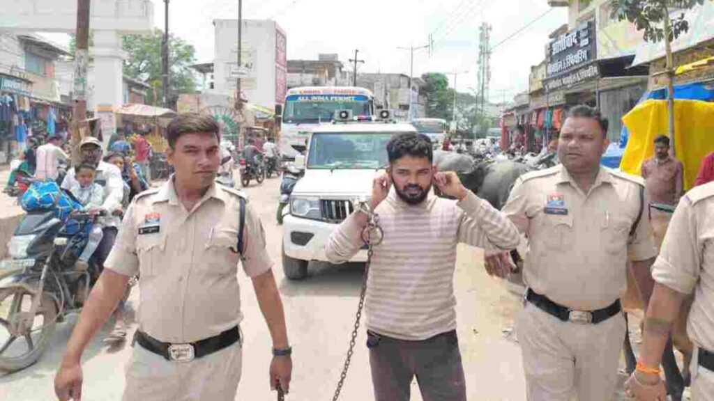 तखतपुर : तखतपुर क्षेत्र में लंबे समय से फरार चल रहे कुख्यात हिस्ट्रीशीटर राहुल धुरी उर्फ गोलू को पुलिस ने आखिरकार धर दबोचा। छेड़छाड़, चाकूबाजी और बलवा जैसे गंभीर मामलों में शामिल आरोपी के खिलाफ तखतपुर थाने में कुल 6 मामले दर्ज हैं। गिरफ्तारी के बाद पुलिस ने उसे नगर में जुलूस की शक्ल में घुमाकर गुंडों को सख्त चेतावनी दी।