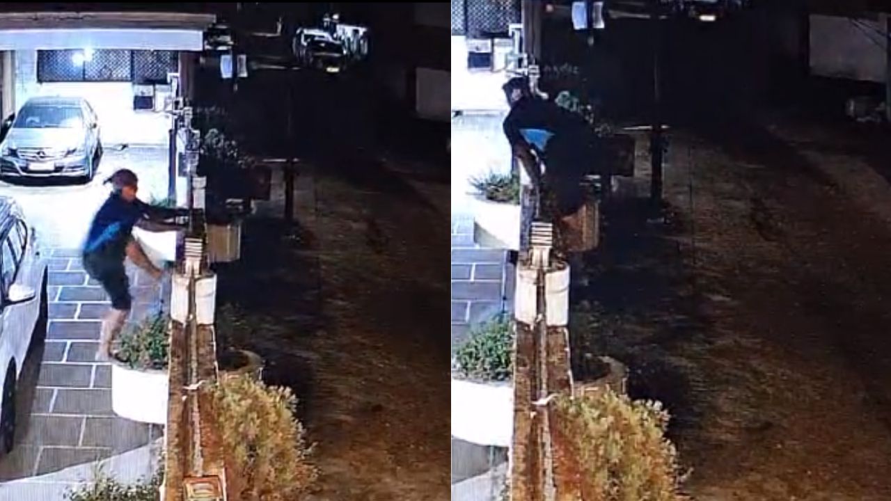 सीसीटीवी फुटेज में दिख रहा है कि चोर 10 फीट ऊंची दीवार फांदकर घरों में घुसता है।