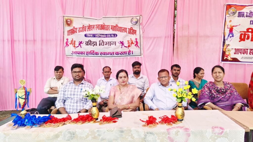 राजिम। शासकीय राजीव लोचन स्नातकोत्तर महाविद्यालय में 2 फरवरी 2026 से तीन दिवसीय वार्षिक क्रीड़ा प्रतियोगिता का आयोजन प्रारंभ हुआ। प्रतियोगिता का शुभारंभ संस्था प्रमुख प्राचार्य डॉ. श्रीमती सविता मिश्रा के निर्देशन में सरस्वती माता की पूजा-अर्चना एवं रिबन काटकर किया गया।