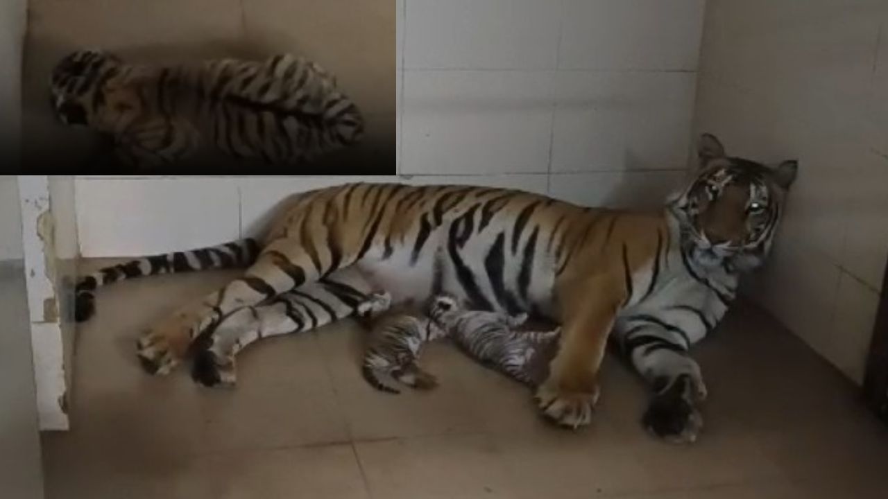 ग्वालियर, मध्य प्रदेश: गांधी प्राणी उद्यान (चिड़ियाघर) में शुक्रवार को खुशियों का माहौल है। मादा टाइगर दुर्गा ने तीन नन्हे शावकों को जन्म दिया है। इनमें से एक शावक सफेद है और दो पीले हैं।