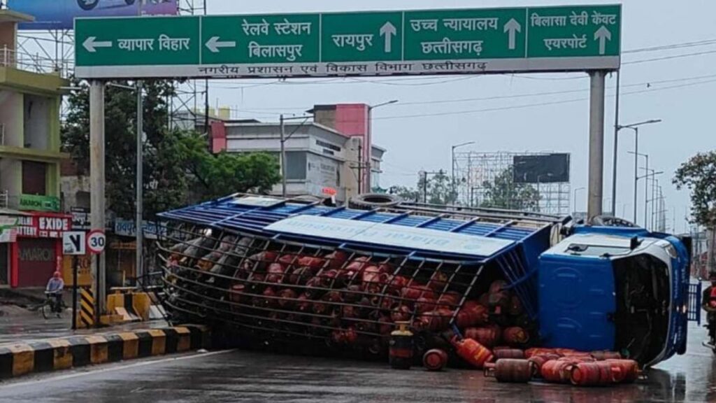 आज सुबह बिलासपुर के सिविल लाइन थाना क्षेत्र में जेपी वर्मा कॉलेज के सामने एक बड़ा हादसा होते-होते टल गया। रायपुर से बिलासपुर गैस गोदाम जा रहा सिलेंडरों से भरा ट्रक अनियंत्रित होकर पलट गया। इस घटना में ट्रक ड्राइवर को मामूली चोटें आई हैं।