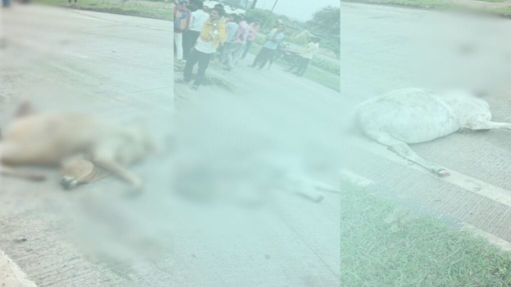 रायपुर: रायपुर-बिलासपुर हाईवे पर आज एक अज्ञात वाहन द्वारा रौंदे जाने से आधा दर्जन मवेशियों की दर्दनाक मौत हो गई। घटना की सूचना मिलते ही पुलिस मौके पर पहुंची और जांच शुरू कर दी। वहीं, गौवंश के साथ हो रही लगातार क्रूरता के चलते बजरंग दल और श्रीराम गौसेवा संगठन से जुड़े गौसेवकों ने घटनास्थल पर भारी आक्रोश जताया, जिससे चक्काजाम की स्थिति उत्पन्न हो गई। हालांकि, पुलिस प्रशासन की समझाइश के बाद मृत 5 गायों और 1 बछिया का विधिवत अंतिम संस्कार किया गया।